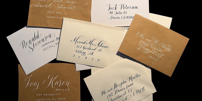 Make a lasting first impression with our handwritten calligraphy envelope addressing service. Whether you’re sending wedding invitations, holiday cards, or special announcements, beautifully addressed envelopes set the tone for your event and add a personal, elegant touch.